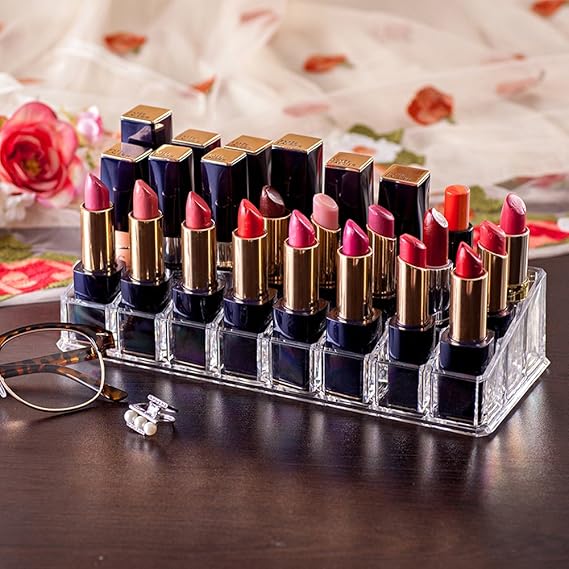 Amazon アクリル製 仕切り式 リップスタンド ディスプレイ 透明ケース 蓋付き 口紅入れ 27本 口紅収納ボックス 透明 収納ケース ボックス オンライン通販
