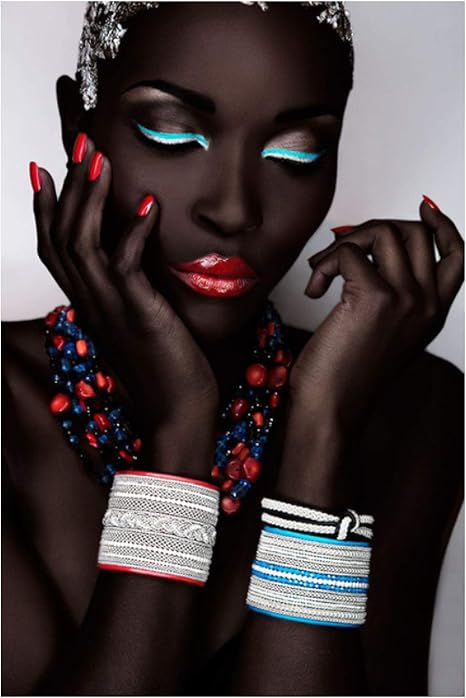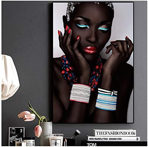Amazon 黒アフリカのメイクアップ女性黄金の唇ポスターとキャンバス上のプリント現代の壁アート油絵の写真家のリビングルームの装飾60x60cmなしフレーム アートフレーム ポスター オンライン通販