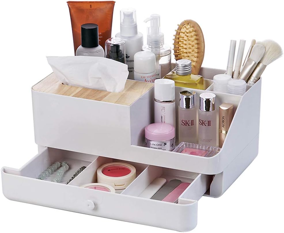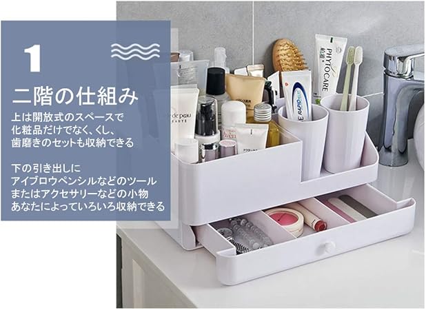 Amazon 化粧品収納ボックス Baffect コスメボックス 二階収納 水切り 一体型 コスメ アクセサリー ティッシュ 小物入れに適用 ホワイト Baffect メイクボックス 通販