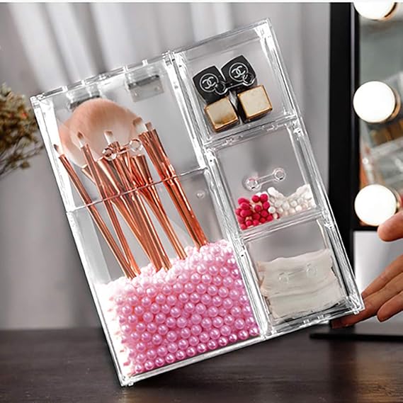 Amazon メイク 化粧ブラシ ケース 化粧筆ボックス フェイスブラシ収納 コスメ 化粧品 口紅 リップ スポンジパフ メイクスポンジ 小物入れ 女子へのギフト アクリル製 透明 V Hanver メイクボックス 通販