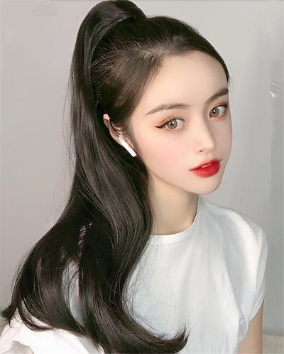 海外輸入 ポニーテール エクステ ロング ストレート ウィッグ 55cm リボン式 ゴム式 つけ毛