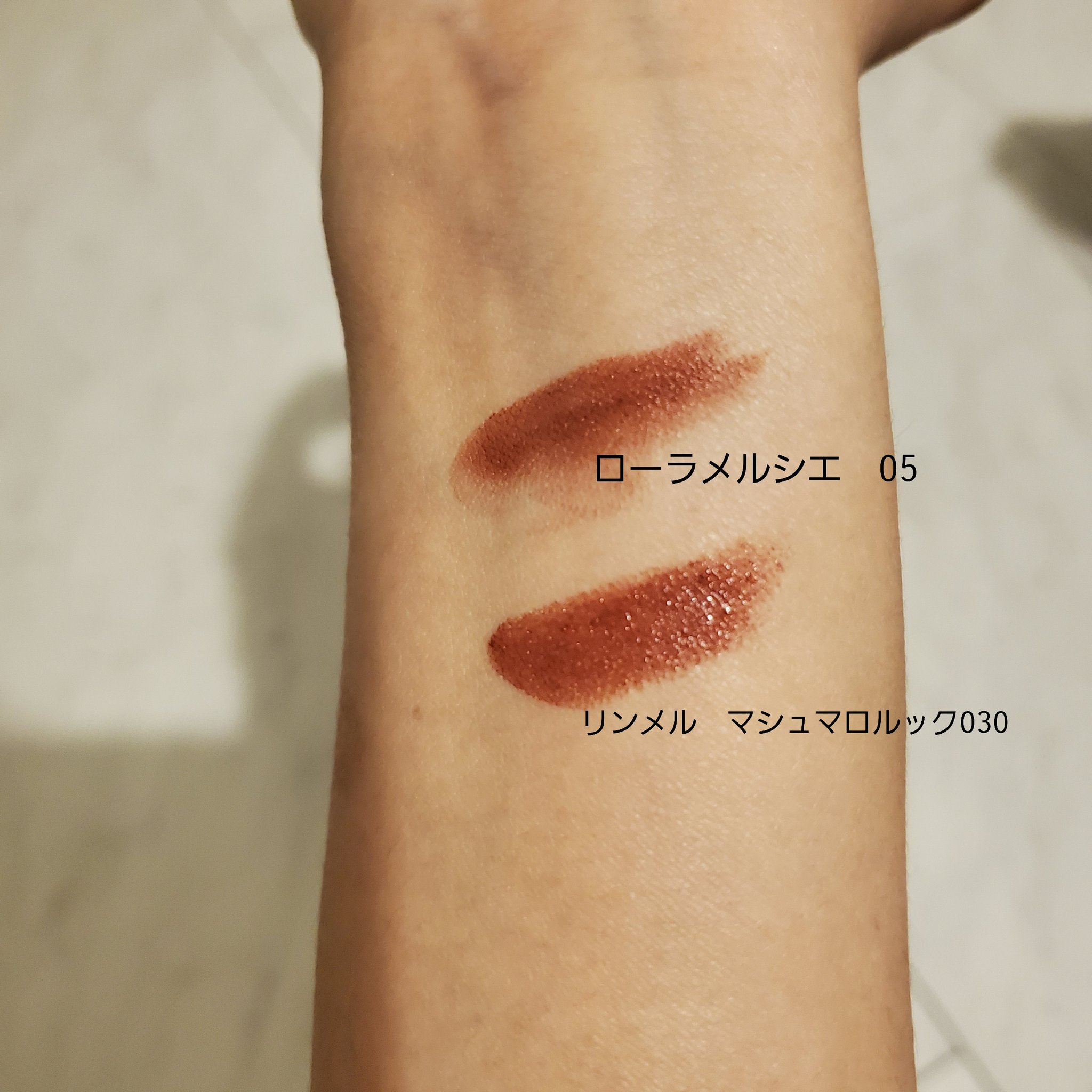 Ayao On Twitter ローラメルシエのリップ05番が買えますた 赤味ブラウンでブルベの私でも行けた マットよりだけど乾燥しない付け心地は好き 何かに似てると思ったらリンメルのマシュマロルック030にそっくり ローラの方がミルクを一滴落としたブラウンって感じ