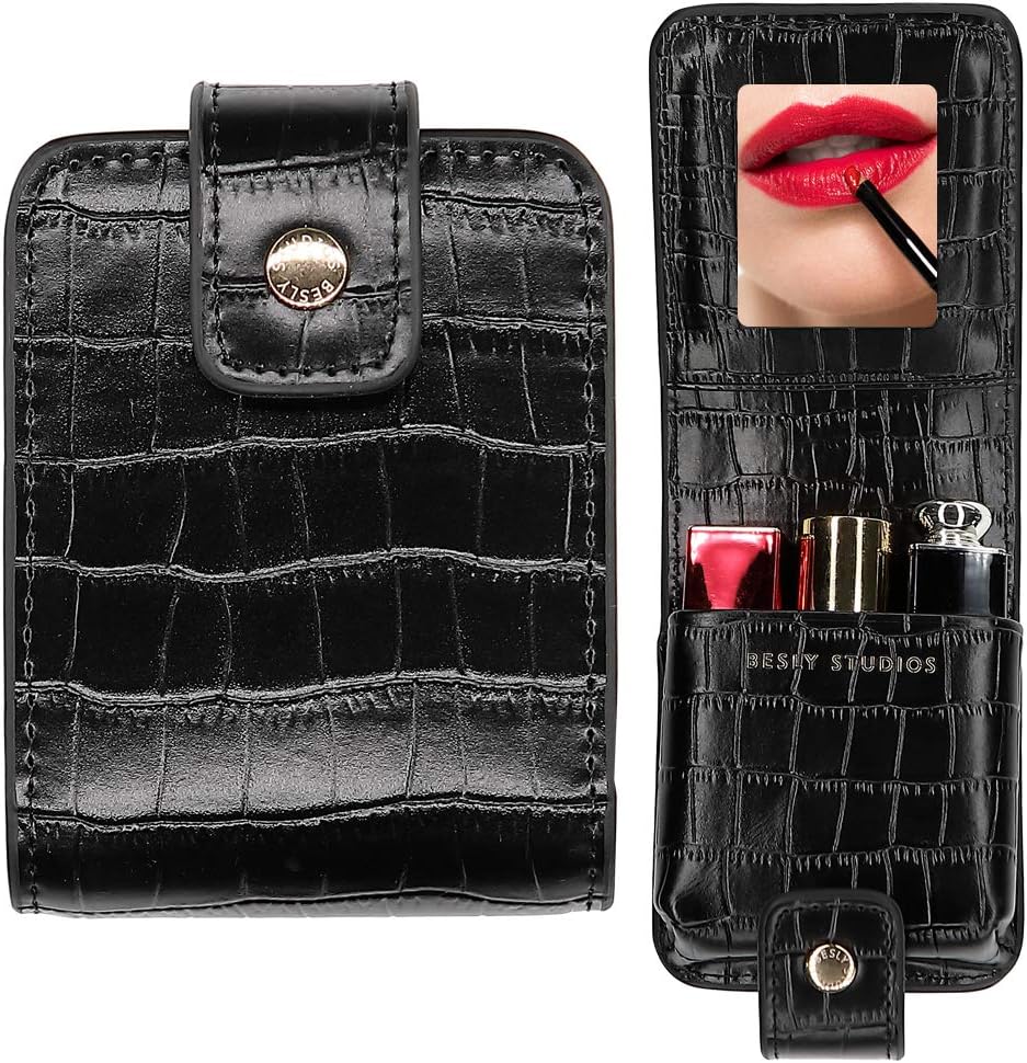 Amazon Besly ミラー付きミニ口紅バッグ 女性用リップ化粧ポーチ リップを収納する ミニサイズ 携帯しやすい 人工製 黒 ワニ革を真似する牛革 Besly 化粧ポーチ 通販