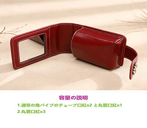 Amazon リップケース 口紅ケース ミラー付き 携帯しやすい 化粧ケース 上質レザー 本革 女性用リップ 鏡付け 化粧ポーチ レッド ジュエリー収納 オンライン通販