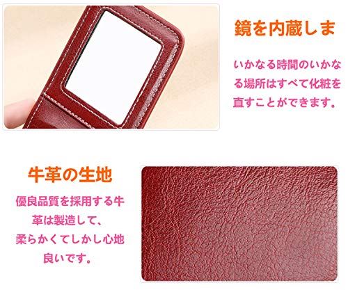 Amazon リップケース 口紅ケース ミラー付き 上質レザー 本革 化粧ポーチ 携帯しやすい 化粧ケース 女性用リップ 鏡付け 赤 ジュエリー収納 オンライン通販