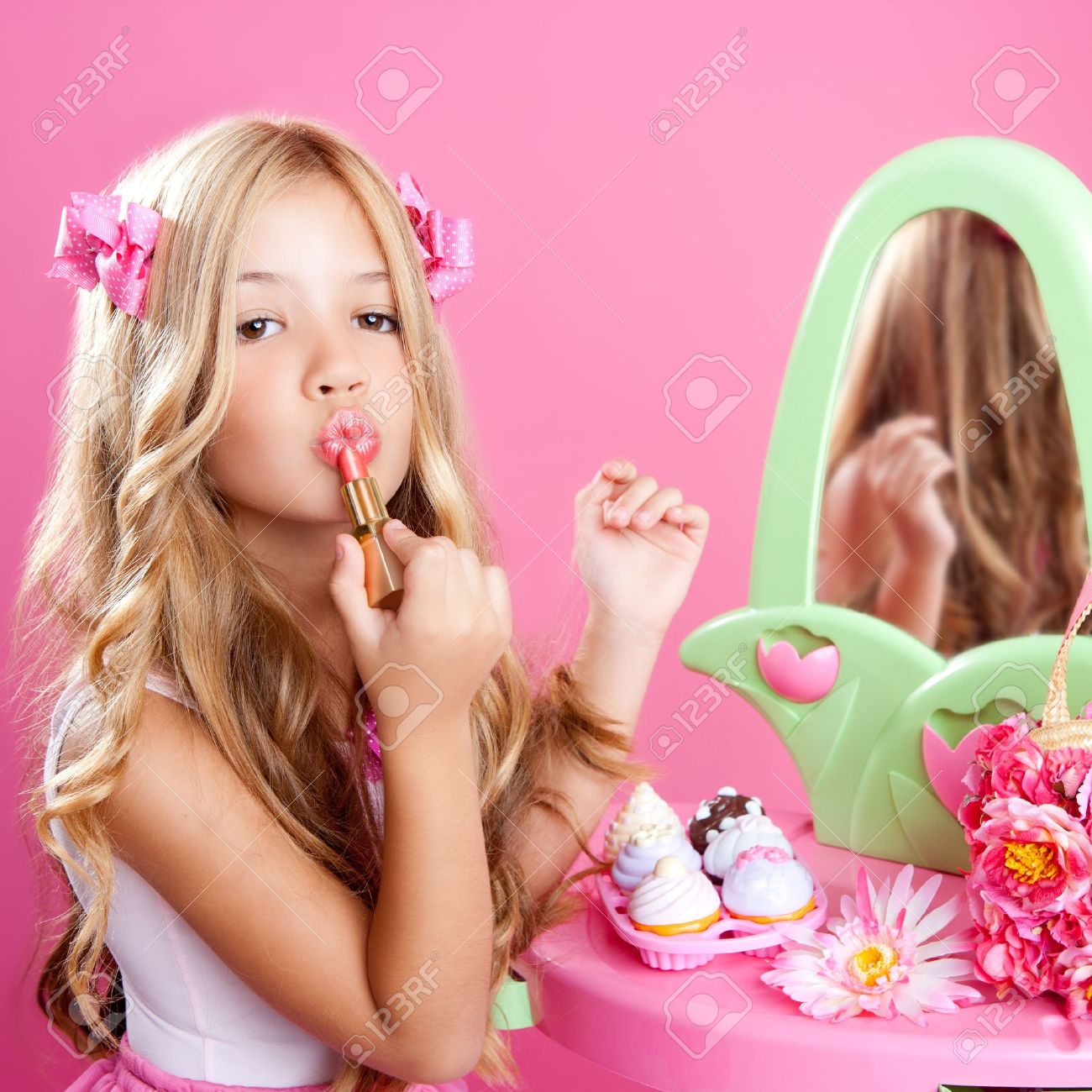 口紅ピンク虚栄心ミラーで小さな人形の女の子をファッションします の写真素材 画像素材 Image 10494009