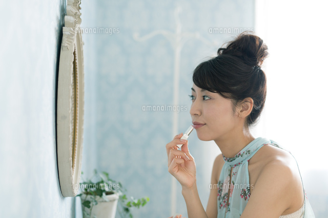鏡の前で口紅をつける女性 10736002488 の写真素材 イラスト素材 アマナイメージズ