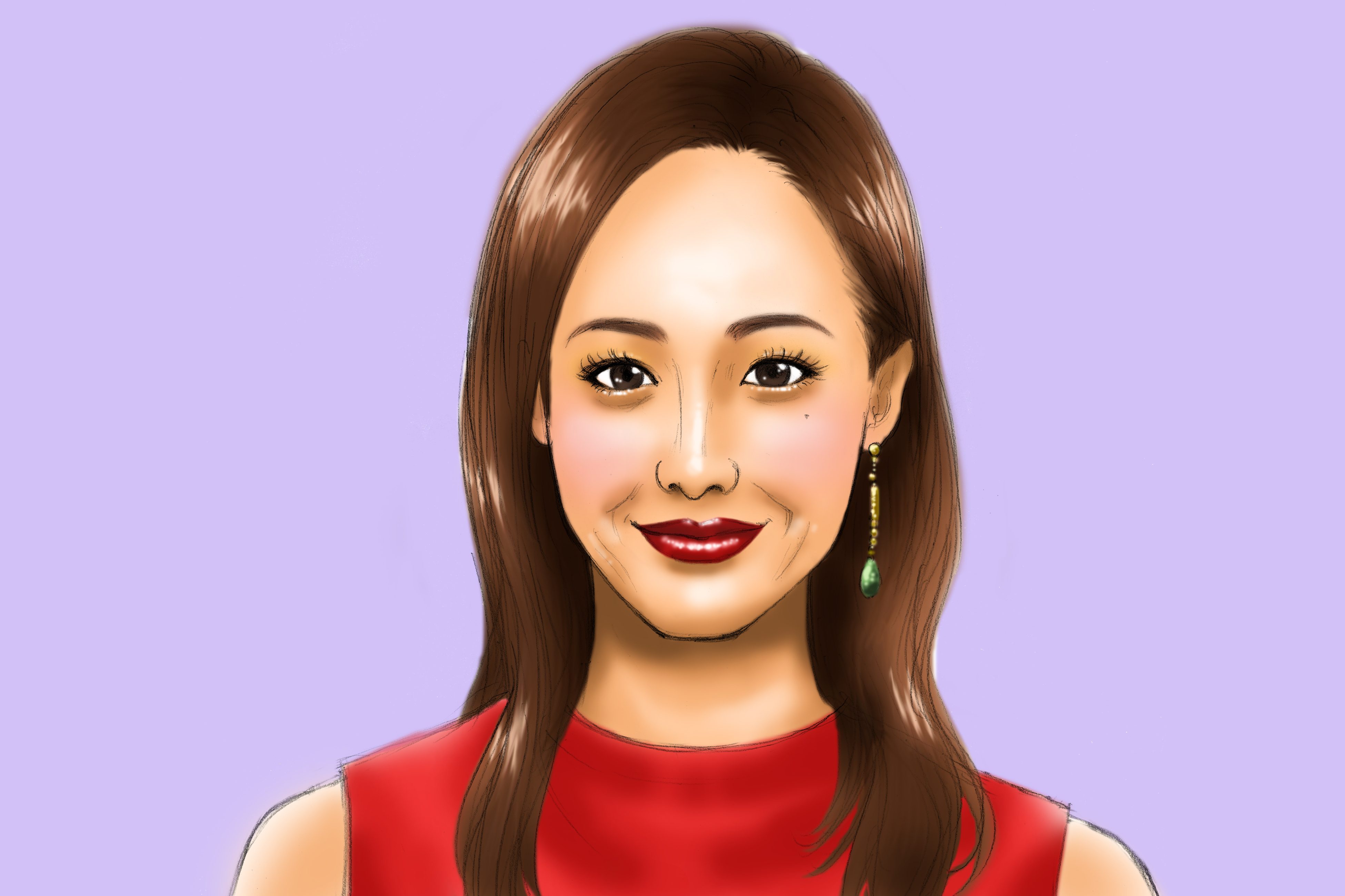 セミロング 前髪 口紅 赤