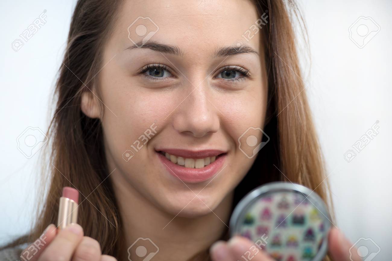 口紅をつけている若くて笑顔の女性 の写真素材 画像素材 Image 97403930