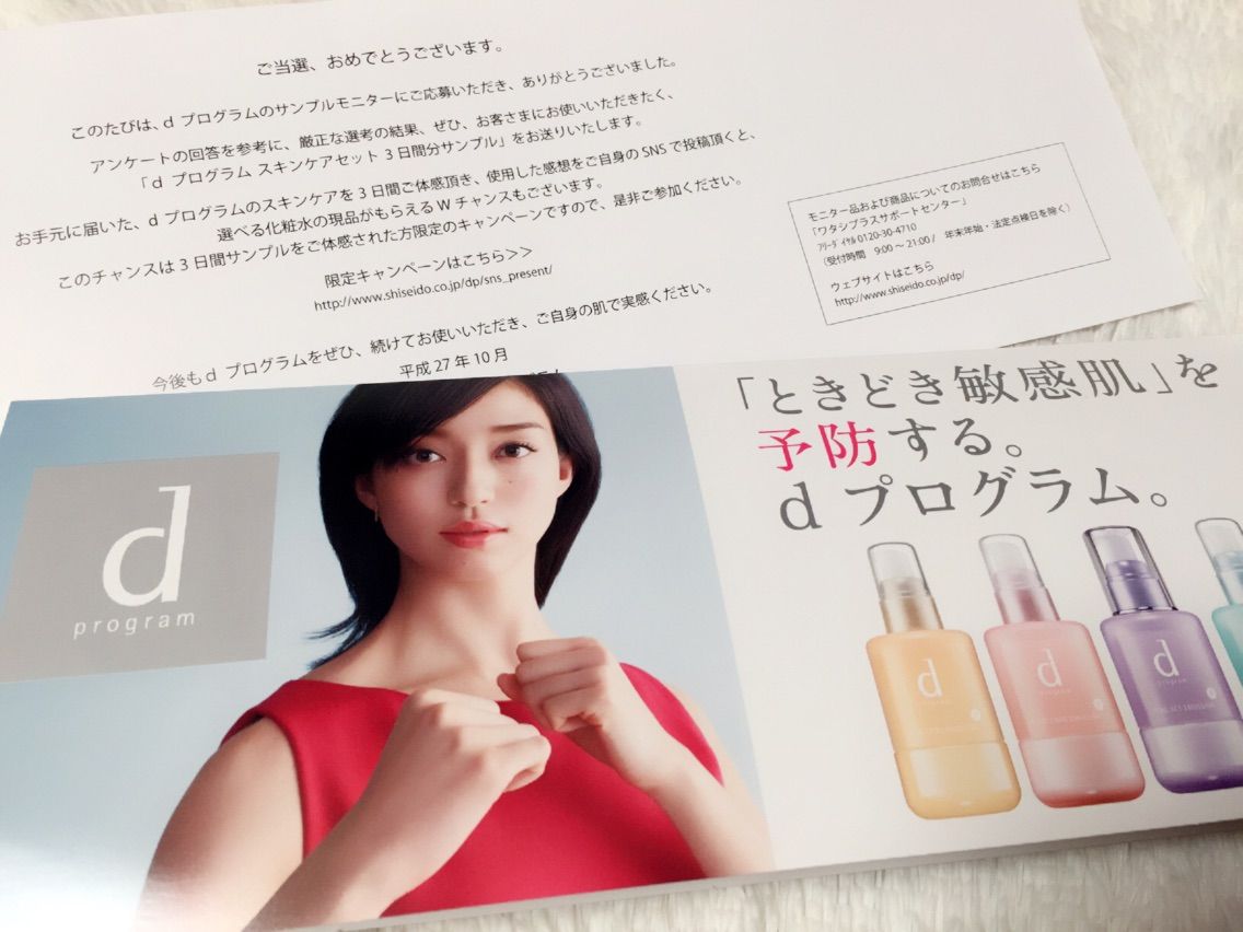 最近当選したサンプルモニター Shiseido 資生堂 Dプログラム Kanebo Dew ボーテ は ち み つ め い く