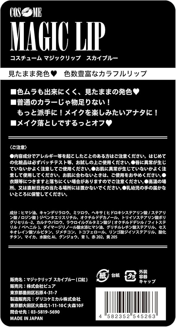 Amazon ピュア コスチューム コスメ マジックリップ スカイブルー コスチューム Coschume 口紅 通販