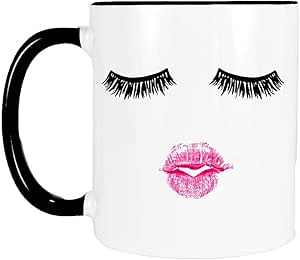 Amazon まつげとリップスティックコーヒーマグ 妹のブラックとホワイトまつげまつげマグカップ マグカップ ガーリーギフト キュートマグ 誕生日ギフトfor Her Boombear グラス タンブラー
