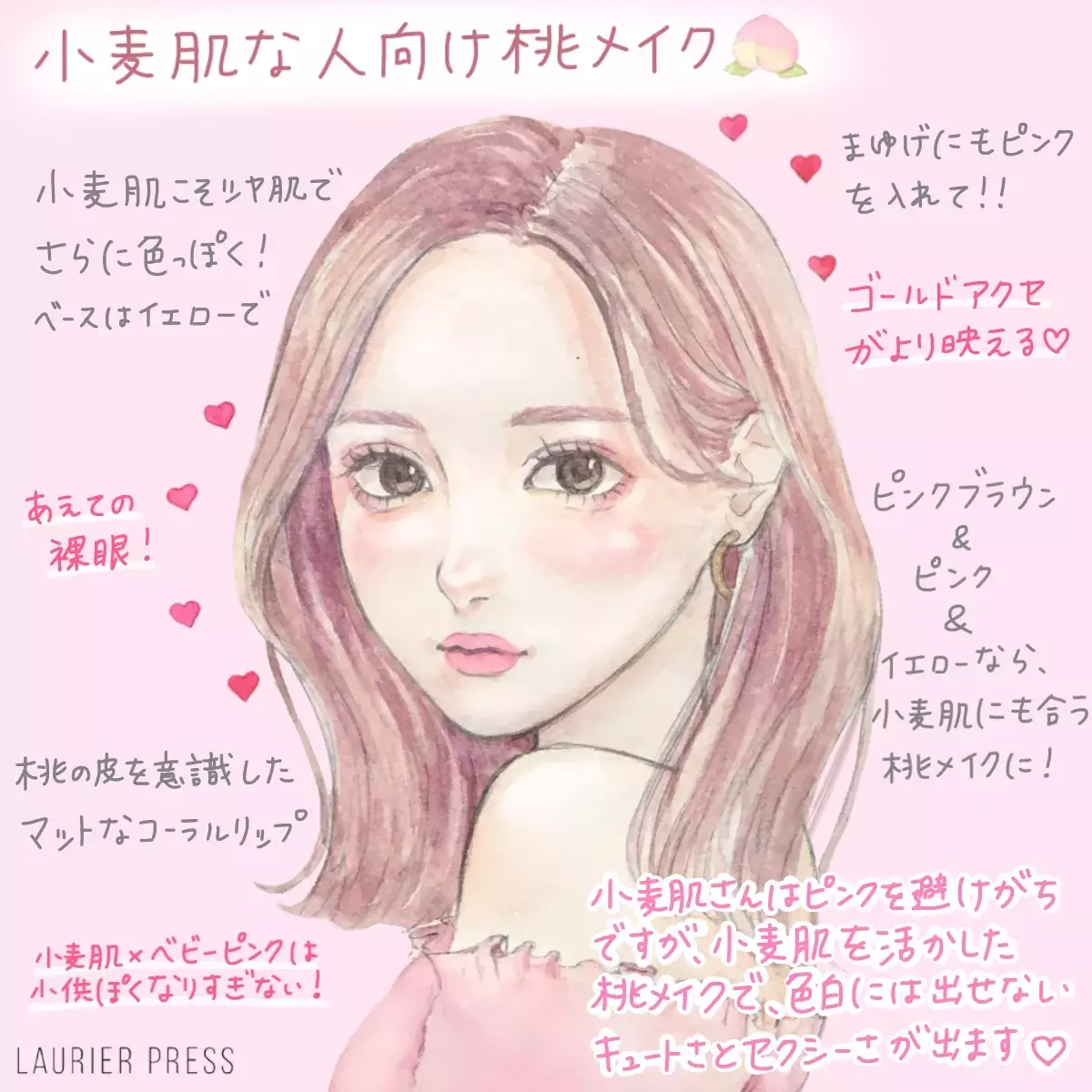 小麦肌さん 色白さん別 トレンド 桃メイク で春キブン イラスト ローリエプレス