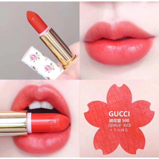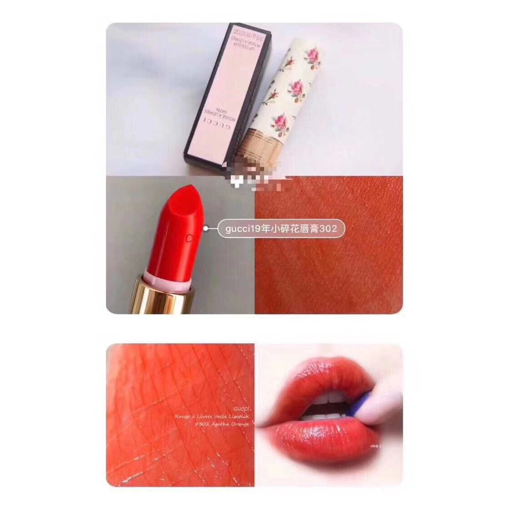 M S 免稅店現貨 預購gucci Rouge A Levres Voile 碎花satin 金管唇膏口紅 蝦皮購物