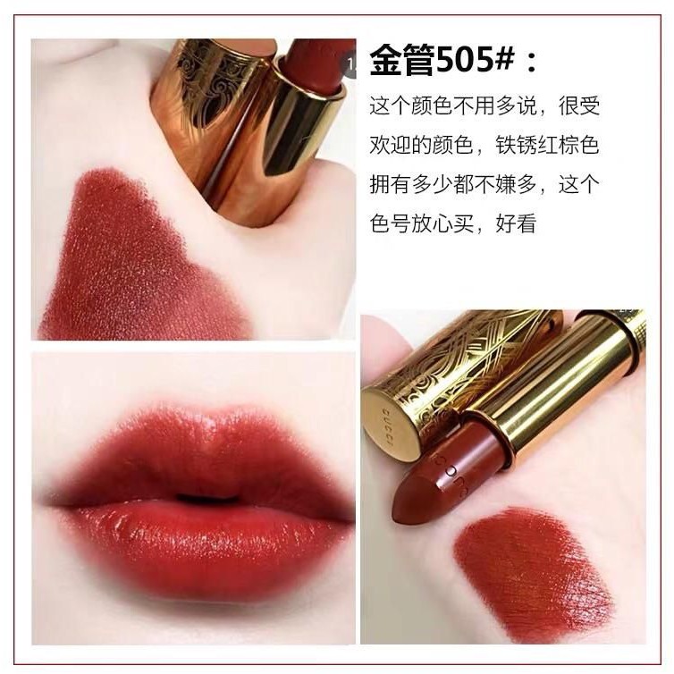 Gucci 唇膏新款霧面金管金管碎花籃管韓國免稅代購 蝦皮購物