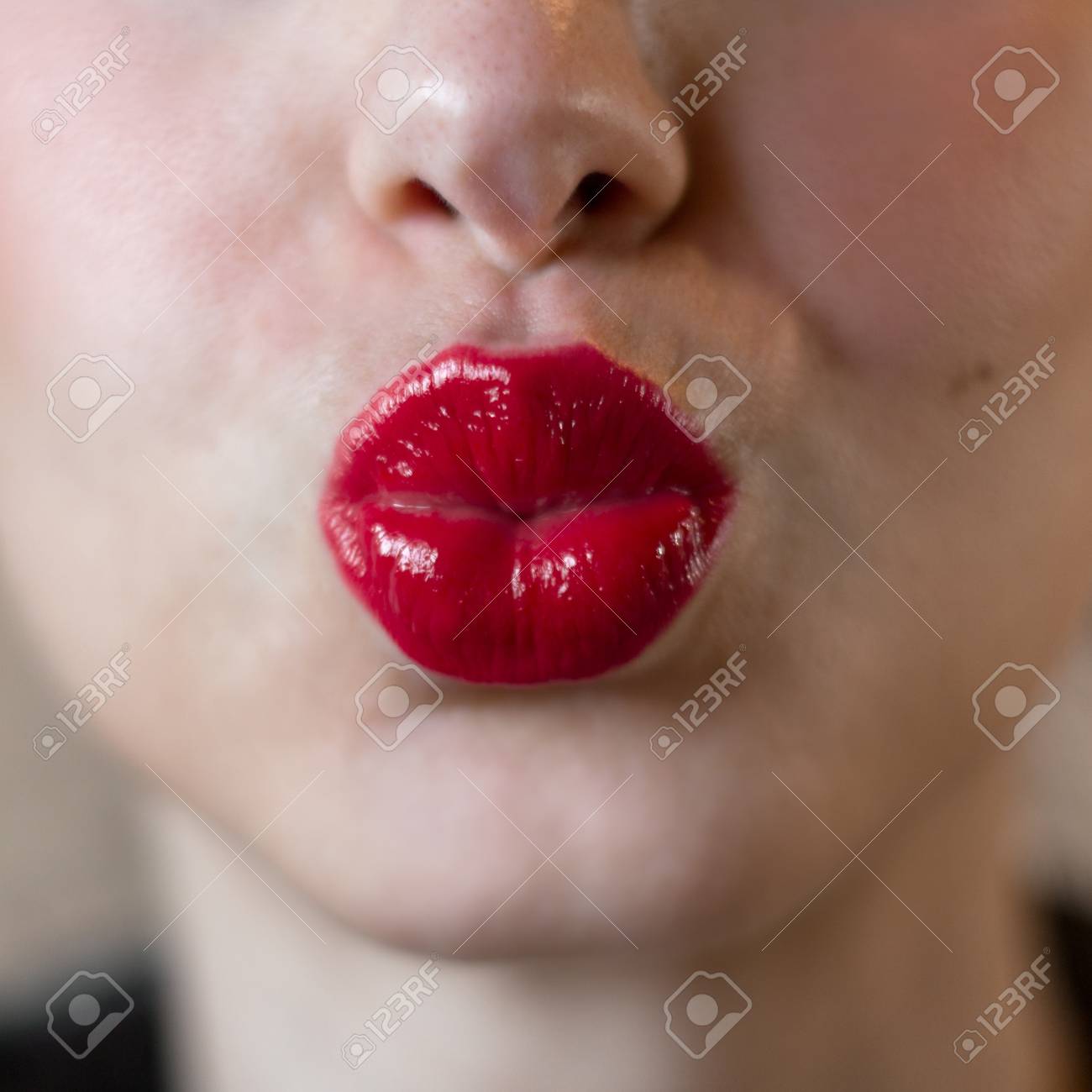 極端に彼女の唇に真っ赤な口紅で女性の顔のクローズ アップ の写真素材 画像素材 Image 37445799