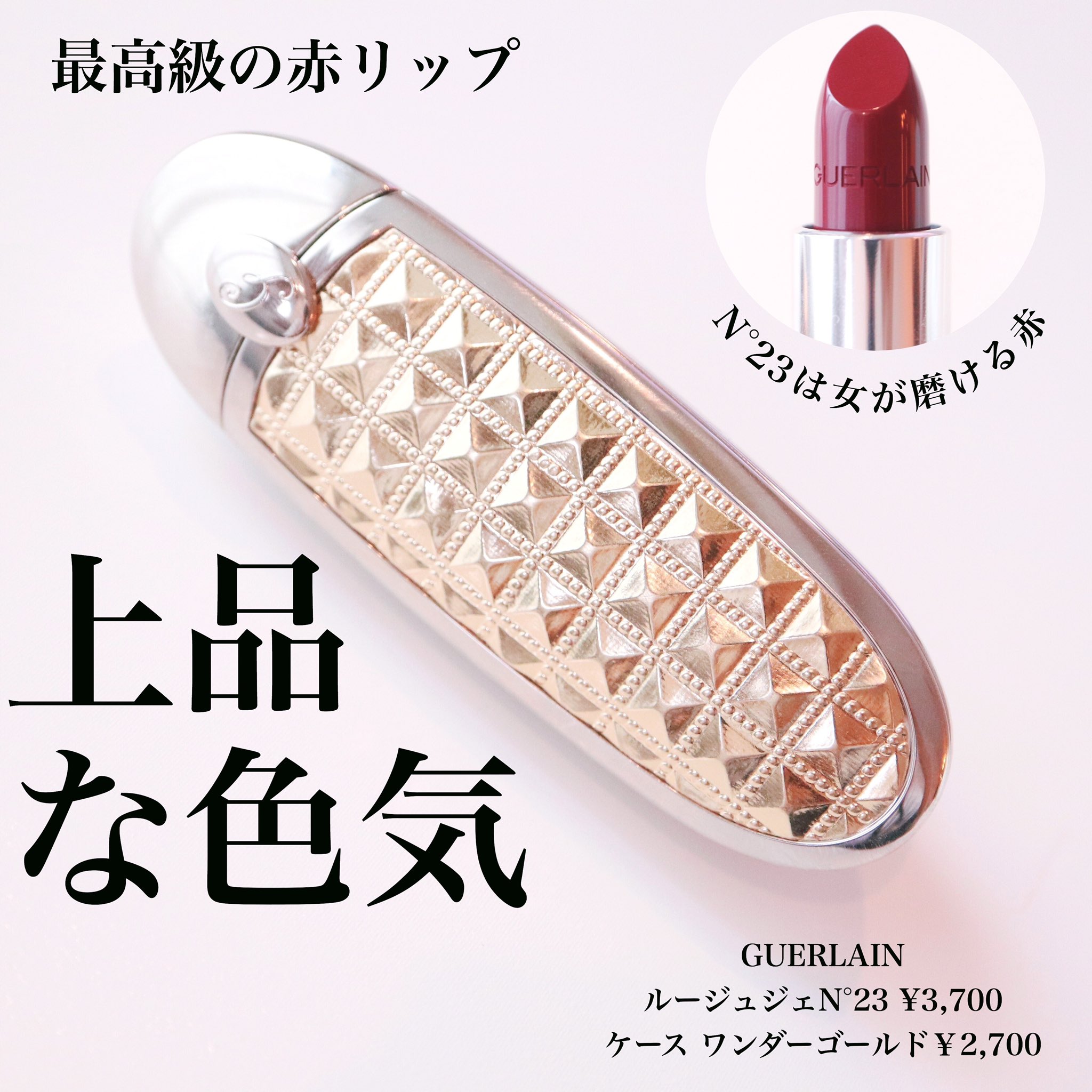 Romi On Twitter ゲランの赤リップが最高だった ケースは限定のワンダーゴールド 鏡 も付いてて持ち運び便利 中にセットしてるルージュはn 23 私赤リップは似合わないと諦めてたんだけど これはいける わりとシアーな発色だし 毒毒しくない けど深みのある赤