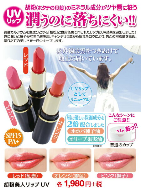 楽天市場 落ちない口紅 落ちないリップ Uv 落ちにくい 口紅 ルージュ リップ 落ちない 食用色素成分を使った自然派口紅 天然成分 赤 ピンク オレンジ リップクリーム リップグロス リップスティック Uv 胡粉美人リップuv ヴィヴィアン ネオ