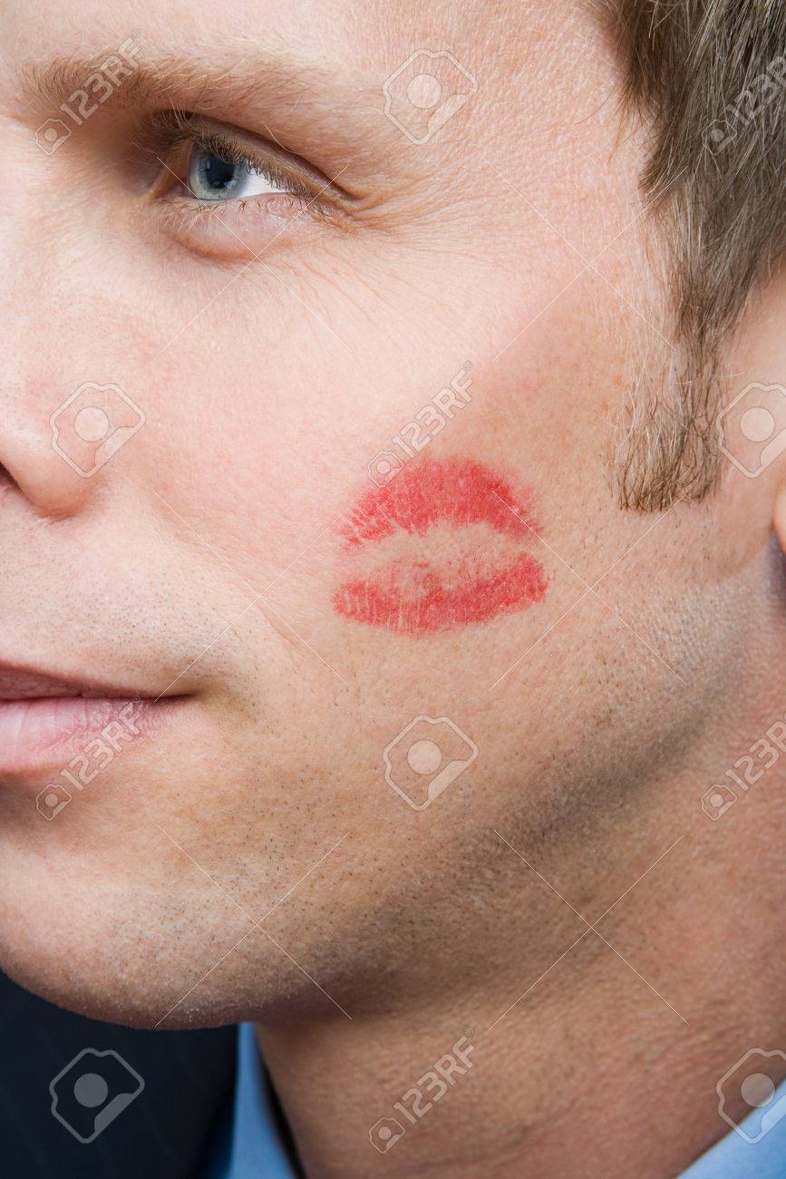 男の頬に口紅の接吻 の写真素材 画像素材 Image 49845945